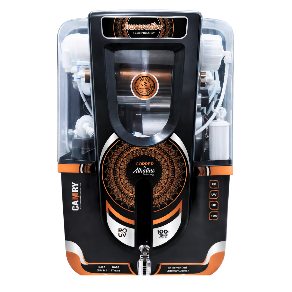 Experience advanced modern Design with the CAMRY Zinc Copper Alkaline RO System cabinet, A modern transparent cabinet design that combines innovation with a premium look to attract customers instantly. Built for durability and universal compatibility, ideal for dealers looking to offer standout models.