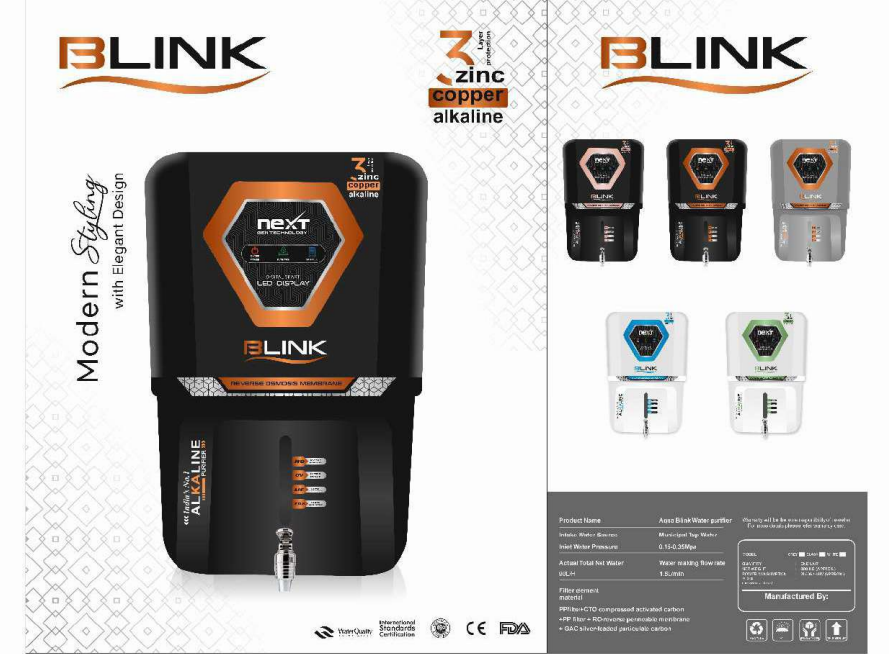 Blink is a sleek and durable RO cabinet designed to enhance product appeal and attract customers instantly. Built for easy installation with universal compatibility and available in multiple modern color variants.